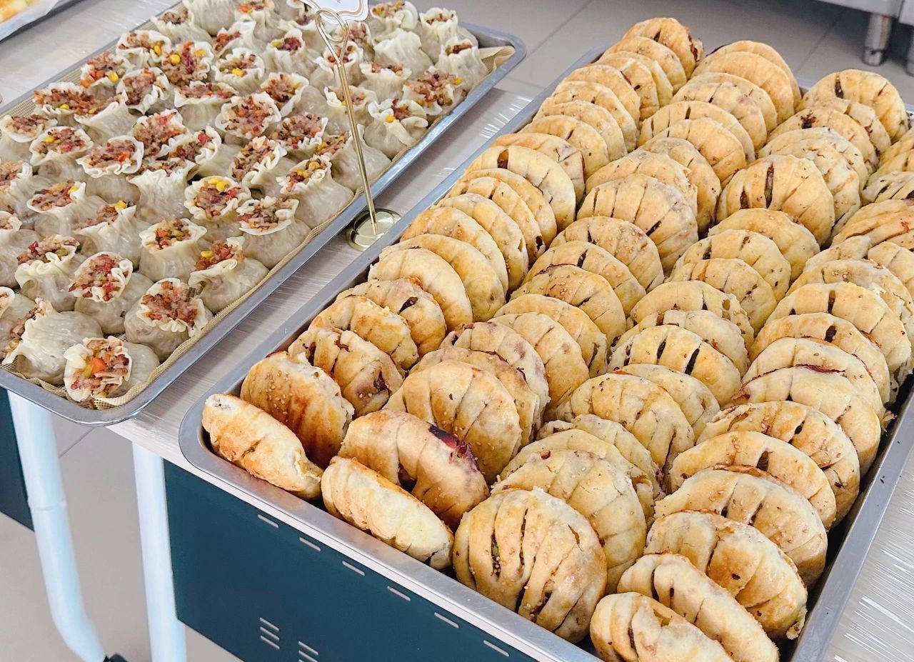 现场热闹非凡,佳肴种类丰富。不仅有中式烹饪的传统美食,还有风味独特的糕点小吃,专业厨师的精心制作,满足了不同员工的口味。