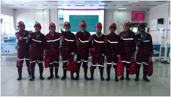 为了按期交付项目,华宁的工程师们克服巷道坡度大、地热温度高等许多难以想象的困难,每天负重(包括矿灯、自救器、配件、工具等)徒步往返十多公里,前往工作面进行设备调试;常常一忙起来就顾不上吃饭喝水,连班连轴转下去,有时甚至超过24小时。正是华宁人始终发扬坚持和坚韧的奋斗精神,精诚团结同心协力,使得我们短短三个月便通过了矿方验收。