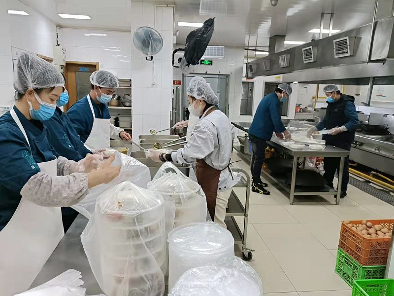 “张灯结彩迎新春,喜乐团圆吃饺子”——华宁的辞旧迎新从喜迎小年开始。腊月二十三,喜庆的大红灯笼高高挂起,五彩斑斓的彩灯准时点亮,浓浓的新春氛围驱散了疫情带来的恐惧与不安。热腾腾的饺子,飘香中透着精心,精心中带着温情,配上2021年最受华宁人喜爱的“口水鸡”,营养爽口的素什锦,一道道美味不仅让奋战在岗位上的员工大饱口福,更让大家真切地感受到来自华宁的厚爱。